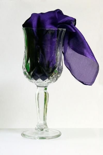 The top edge of the mirrored divider is slightly below the mouth of the Chalice, to help reduce the risk of "flashing" the gimmick during performance, allowing the glass to be rotated quickly, easily and surely, with one hand, for appearances, vanishes and transformations.